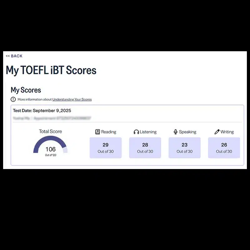 如果考生之前已经参加过雅思/GRE/托福/GMAT/多邻国考试,那么务必要将之前的考试分数告知我们,因为考试分数如果短期内提分太多,就很有可能被怀疑作弊。我们的代考专家可以精准控分,根据之前考生的分数记录帮助考生制定最恰当的代考分数,保证不会被怀疑分数。